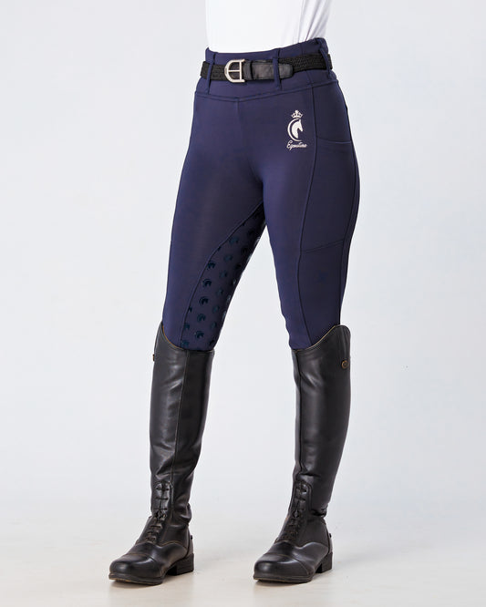 WINTER ALL-SEASON Navy Thermal Horse Riding Tights / Leggings with pockets - FULL GRIP