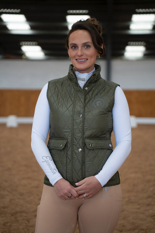 Green Equestrian Technical Long Sleeve Base Layer - OLIVE BIT PRINT